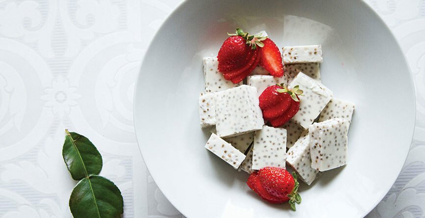 - Add all ingredients except chia seeds into a small pot and bring to the boil. Keep boiling for 15 minutes and remove from heat. Stir through chia seeds and then pour into a large silicone mould or smaller shaped moulds.